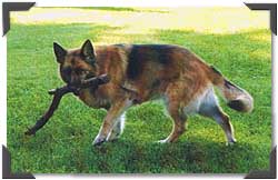 At fifteen years old, Diana vom Glemstal, still cannot resist a game with the stick or ball. She is a little stiff; a lot deaf; does not see very well; but she can still have a bit of fun.
